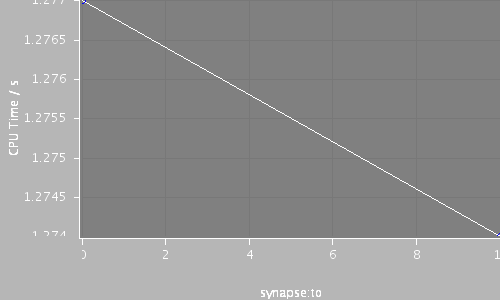 | Compartments | Stochastic channels / cpmts | Continuous channels / cpmts | time/ms | timestep/ms | synapse:to | CPU Time / s |